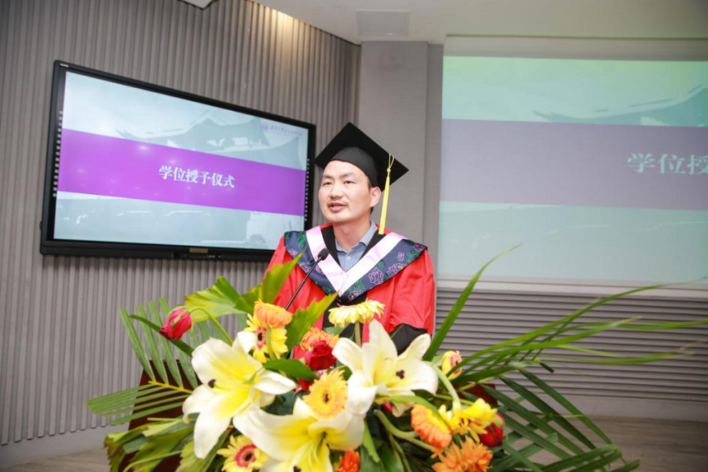 科学学位毕业研究生代表郑清清以“建设、成长、未来”为主题词,分享了她在无码动画 就读期间的点点滴滴。作为学院建立过程中的建设者、亲历者、见证者,她用实事求是的坚定力量、笃实务行的理想信念展现了公管人的风采,她相信各位毕业生会继续保持“公行天下,共济同舟,管通古今,理治八方”的精神气概。