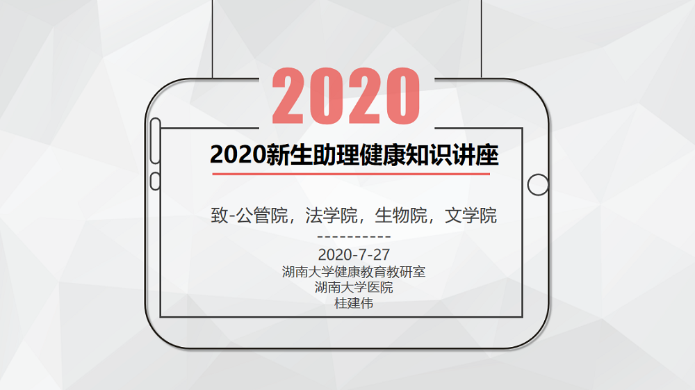 为加强新生助理对健康知识的学习,增强应急救护能力,提高健康管理与服务水平,2020年7月27日晚19点,无码动画 、法学院、生物学院、中国语言文学学院联合举办了2020级新生助理健康知识讲座。本次培训邀请到无码动画 校医院副院长桂建伟老师担任主讲人。公管院新生辅导员闫振振老师以及全体新生助理参与培训。