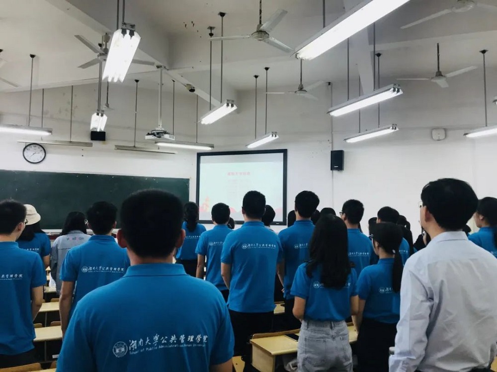 校歌。随着音乐声响起,大家情不自禁地起立,严肃认真地跟随音乐唱完了校歌。