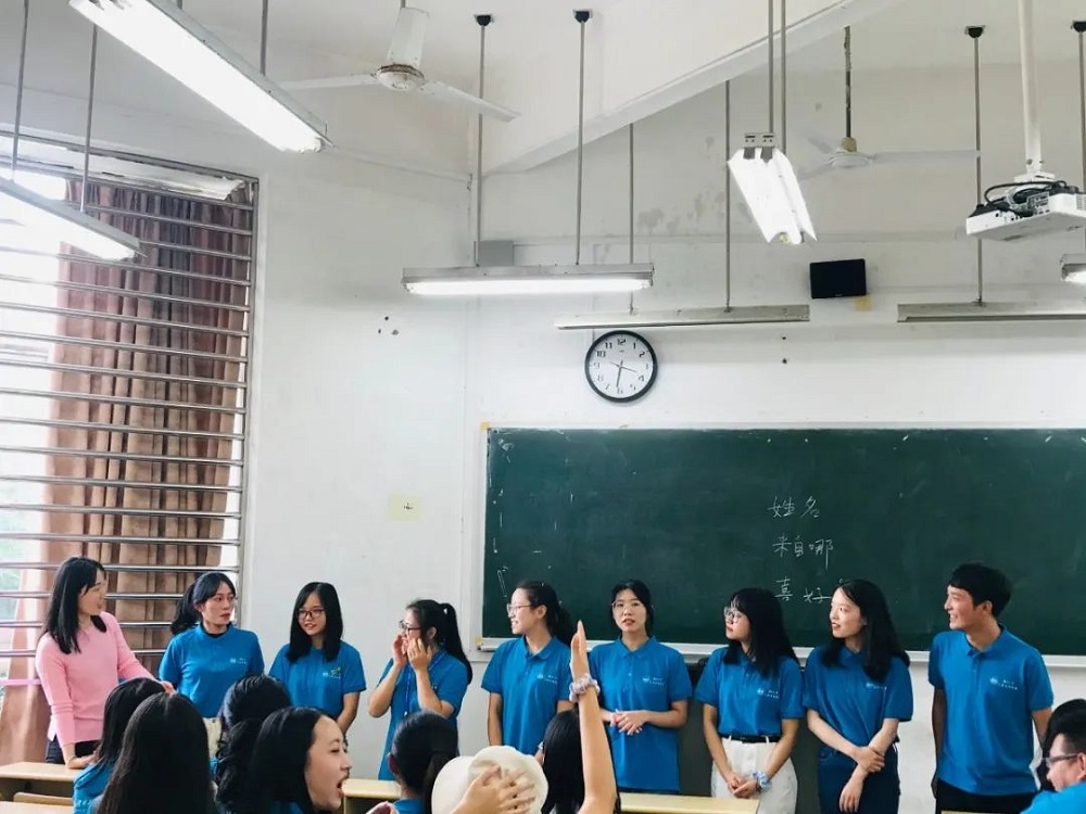 接下来,杨锦滔老师建议同学们多跟老师沟通、联系,确定自己的人生目标,做好人生规划。然后,杨老师带领同学们开展职业生涯规划第一环节——破冰计划。她让同学们两两握手、两两交谈,再逐渐发展成为四人组、八人组,目的是让新生加强相互的了解,迅速融入集体。杜老师也参与其中,与同学们共同游戏,现场氛围十分热烈。