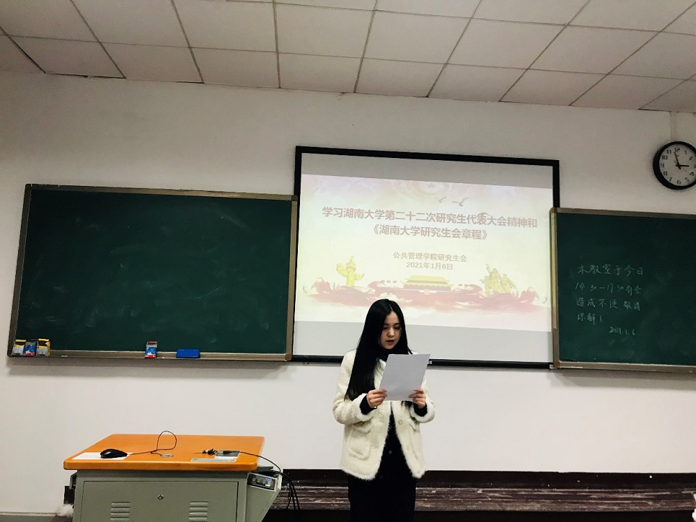 研究生会章程》,结合学院研究生会过去一年开展的工作,要求大家明确自身作为学生干部的职责,代表同学发声,维护同学权益。