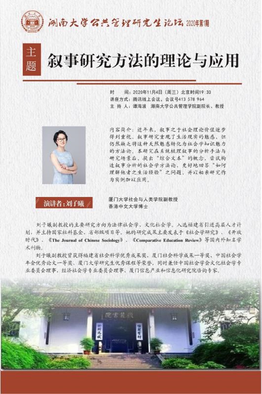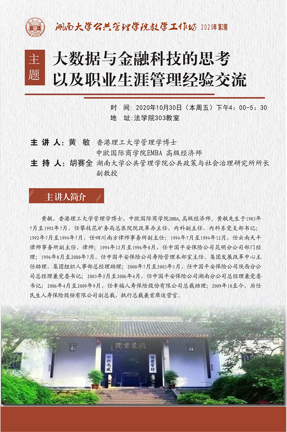 (二)举办研究生论坛、研究生教学工作坊等系列学科特色学术讲座20余场,邀请到国内外知名高校教师、著名企业家等作为主讲嘉宾,提升同学们的学术素养