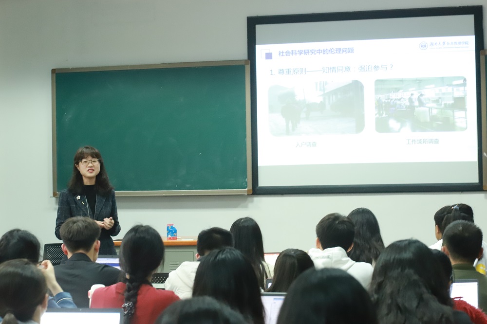 会议伊始,周蔚老师通过翟天临以及自己学弟的真实案例向在场的同学们介绍了学术不端的一些行为,并强调学术诚信是我们达到及格线的基本要求。随后,周蔚老师着重介绍了现代研究伦理中的历史发展以及社会科学研究中的伦理问题。她提到在社会科学研究中要坚守尊重、有利/不伤害以及公平性三大研究伦理的基本原则。其中尊重原则是指在进行相关社会调查时被调查者要具有知情权且需经过本人的同意,有利/不伤害原则的重点强调数据收集、保存以及发表过程中的信息保密,公平性原则的侧重点则在于研究对象选择上的公平、合理。