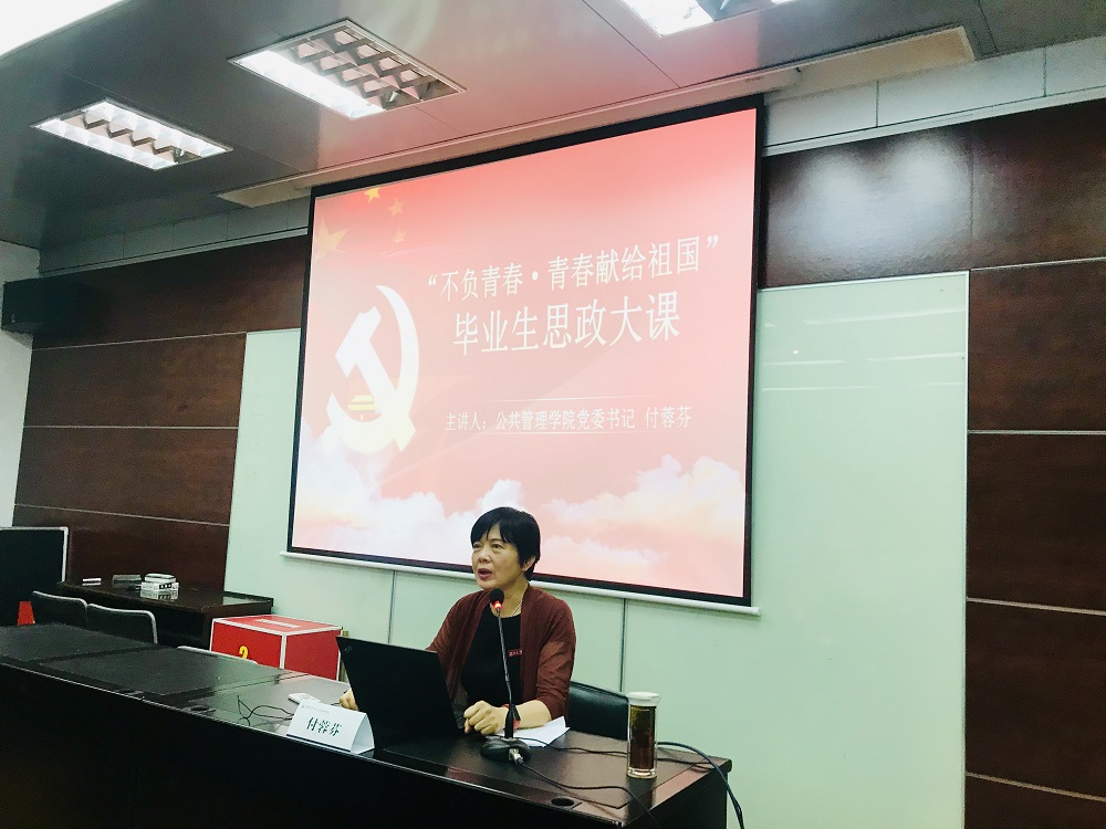 为进一步做好本科毕业生的教育引导工作,引导本科毕业生立大志、明大德、成大才、担大任,6月2日下午,无码动画 于法学楼404室开展“不负青春·青春献给祖国”毕业生思政大课。本次思政大课由学院党委书记付蓉芬主讲,全体2021届本科毕业生参加。