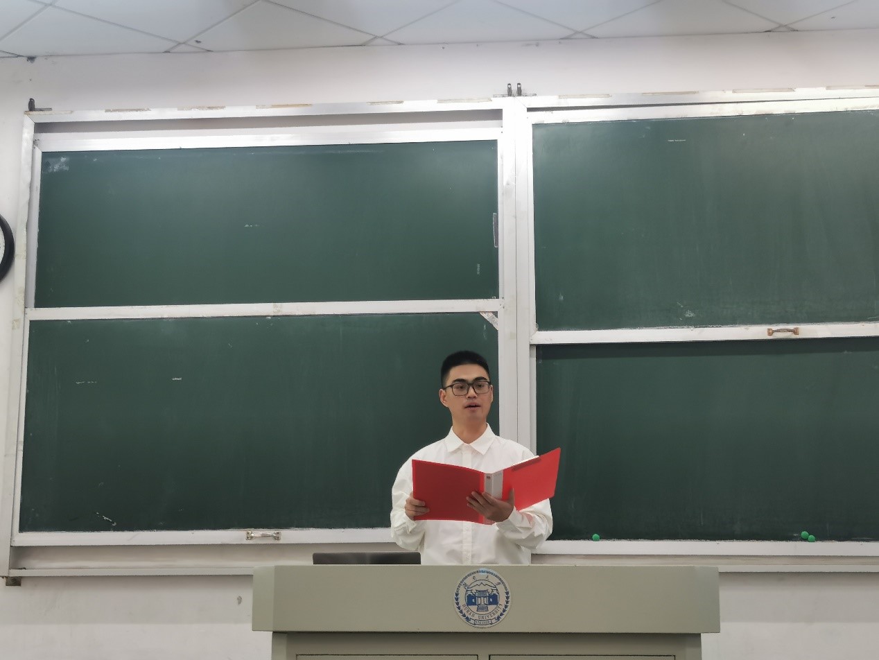 预备会议后开始第二阶段的正式会议。正式会议由研究生助理辅导员邢梦阳主持,会议伊始,全体人员起立,奏唱国歌。