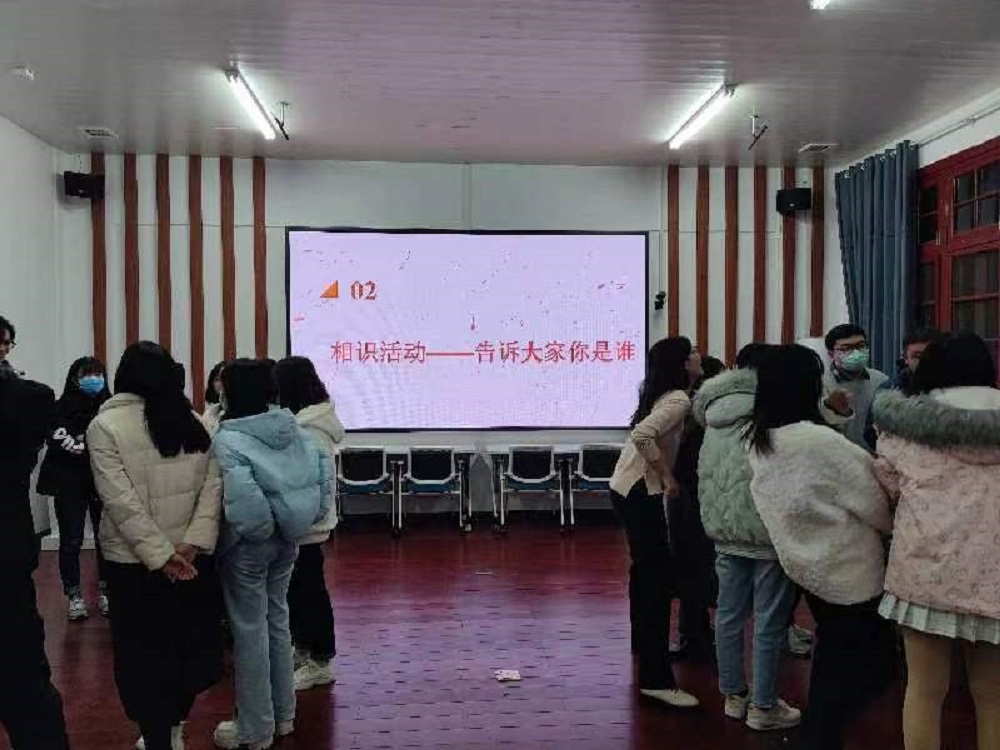 在相识活动中,同学们相互介绍自己的名字、优点,相互提问,同学们踊跃分享,吐露心声,加深了对彼此的了解,拉近了心灵的距离,在场同学纷纷沉浸在愉悦轻松的氛围中。杨老师指出,希望同学们在学习上互帮互助共同进步、在生活上相互关心,共同营造健康文明、积极向上的校园氛围。