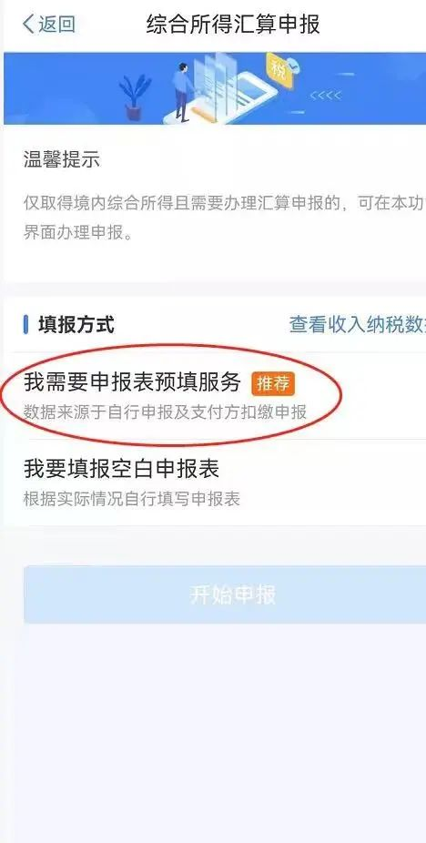 1.进入个人所得税APP无码动画,在【常用业务】栏目点击【综合所得年度汇算】进入,选择“我需要申报表预填服务”。
